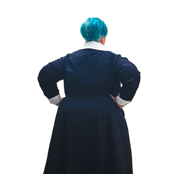 Available in Sizes 14-40 Embrace your inner icon with the Wednesday Dress, a timeless classic with a playful twist. Made from crisp, breathable cotton with a little bit of stretch,...